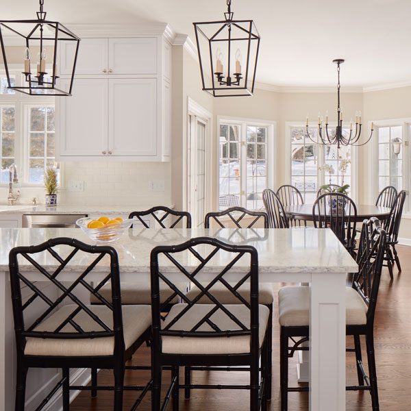 The Living Room feels more like a lounge, with stunning views of the Milwaukee skyline. The use of neutral colors creates a unified look, while using metallics and contrasting shapes keep the space interesting. The Dining Room is reminiscent of an art gallery, with lighting carefully selected to highlight the Homeowner’s art collection. The room remains inviting with cozy chairs and plush carpet.